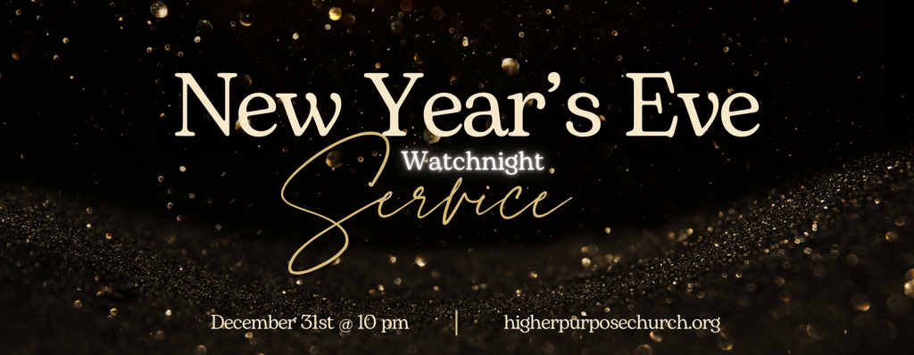 On December 31st at 10:00 PM, we’re gathering at Higher Purpose Church to close out 2025 in prayer and welcome 2026 with powerful worship, real testimonies, and a special message that will launch us into the new year with vision and faith. This night is open to everyone, whether HPC is your church home or you’re simply looking for a joyful, hope-filled place to spend New Year’s Eve.